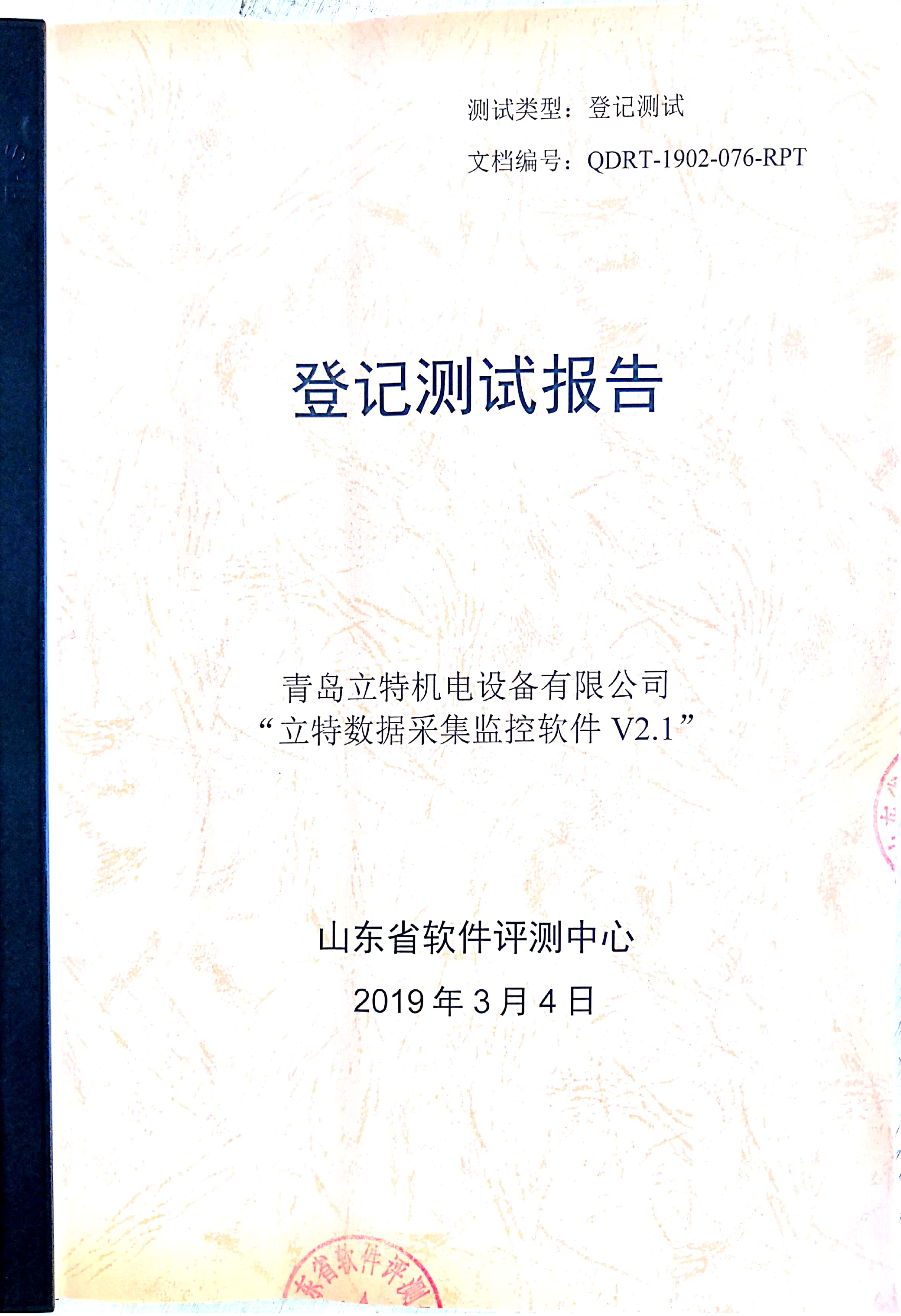 我司提交的“立特数据采集监控软件V2.1”正式通过山东省软件评测中心测评。